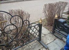 Что же потребовалось нам для существенного улучшения ситуации? Мы поставили ограду на гранитный цоколь. Это значительно улучшило ее восприятие как ограждения. Ограду сын усопшего покрасил сам, это очень показательно для меня в деле обустройство мест захоронений, не каждый найдет силы и время. Мы уложили пол из гранитной брусчатки. Установили новую лавочку и обновили изображение и надпись на памятнике. Сделали удобный подход к могиле от дороги. Результат нашей работы перед вами ниже.