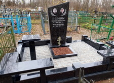 Сразу же после установки надгробья мы приступаем а облицовке бетонного периметра плитами из полированного гранита.
